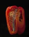Through allusion and metaphor, I am addressing images of pain sensations and options for living. For this series, I have created a visualization of what my spine looks like to me--not the real spine, but an unorthodox view of my anatomy. These photographs convey my feelings of living with a disability, the pain of aging and daily confrontation with my mortality.