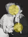 Influenced by vernacular photography, “VISUAL DNA…the language of photographs” references John Baldassari’s photographs that used colored circles to hide the faces and to put the focus on gestures. John Sular’s “Photographic Psychology: Image and Psyche” reminds us that “Although a photograph cannot record body movement over time, as does video, it excels in portraying the essence of a person disclosed through body language at a particular moment in time.”